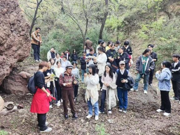 了解了禹州中药材的规模化种植情况后,学生们再次出发踏上了一场充满挑战与乐趣的徒步上山之旅。他们往返8公里,沿着山路观察道路两边种类繁多的野生中药材,沿着黄土和石头绵延出来的山路,体会中药历史的发展是中华民族祖先对于大自然探索、发现、总结、应用的长期积累,在亲身体验了中药采摘的艰辛与乐趣后更能理解中药历史文化具有价值和魅力。虽然大家流着汗,拄着随手捡来的树枝,但学生们纷纷表示这样的实践学习不仅锻炼了身体,还深刻感受到了大自然的神奇与中药文化的博大精深。