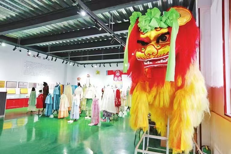 随后,师生一行人来到了霍庄社火电商产业基地。在这里,老师带领同学们参观了社火道具的制作过程,并亲自参与了制作体验。同学们在非遗传承人的指导下,动手制作了简单的社火道具,体验了从设计到成型的全过程。这一过程不仅锻炼了同学们的动手能力,也让同学们对社火艺术的传承与发展有了更加直观的感受。